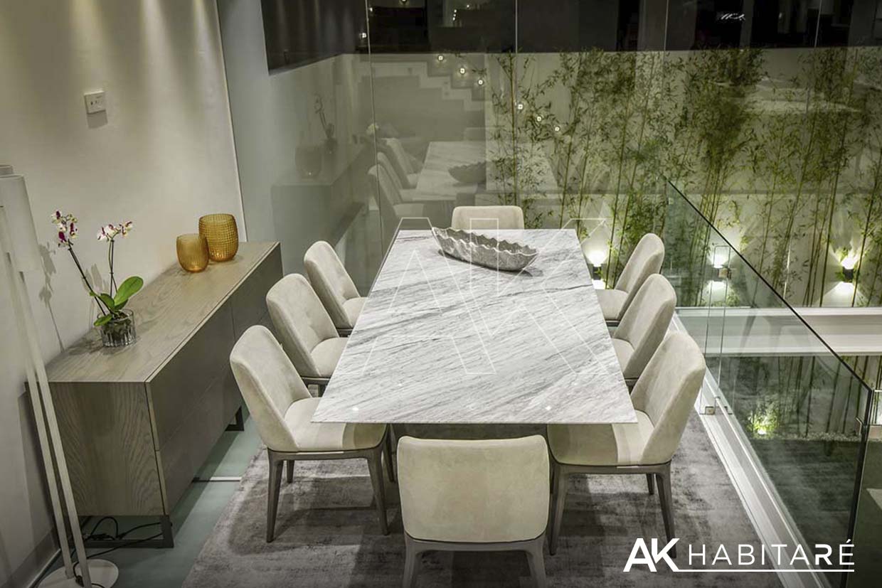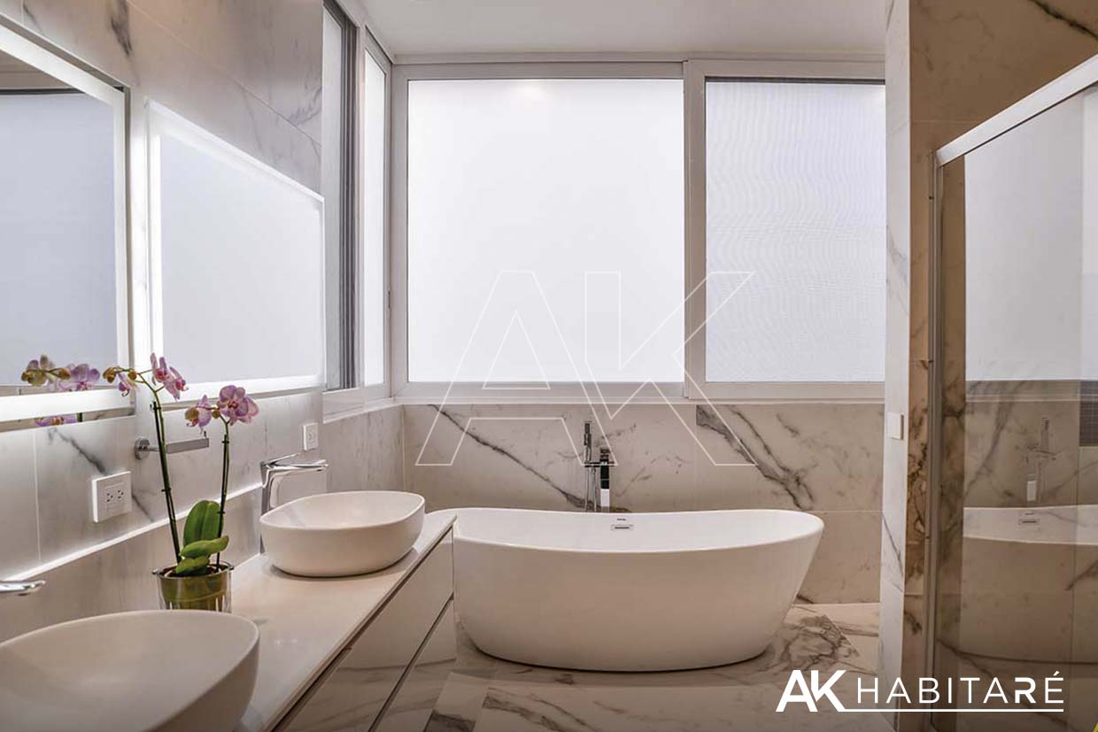Piso general en porcelánico de ultra gran formato, medidas de 1.60 m por 0.80 m.