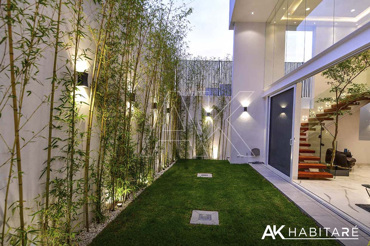 Decorado con bambú japonés, terraza con piso, y un pasillo de servicio, todo esto con una iluminación súper bonita